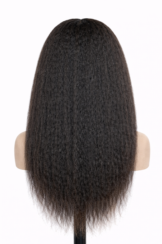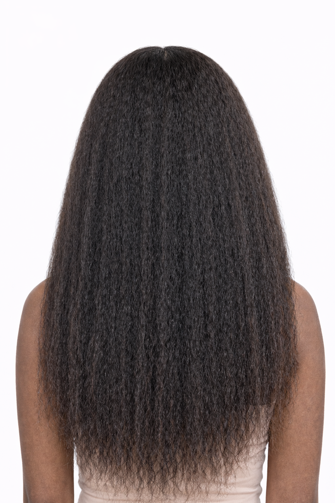 Perruque U Part en cheveux 100 % Remy, texture crépu lisse (yaki straight) pour un rendu naturel et volumineux.